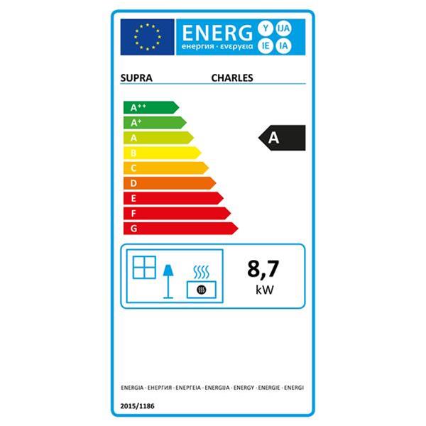 Puissance : 8,7 kW Taille des bûches : 50 cm Rendement utile : 77 % Rendement saisonnier - ETAS : 67 % Taux de CO dégagé : 0,08 % Indice efficacité énergétique : 102