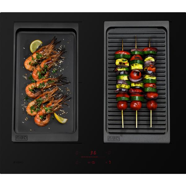 Table à induction ASKO HI2643FMG1 Série 2 largeur 60 cm - Elle propose 4 foyers induction avec une puissance maximale jusqu’à 3 kW en Boost sur chaque zone Bridge™ pour saisir rapidement et gagner du temps en cuisson - Elle dispose de 9 niveaux de puissance et d’un mode Boost pour ajuster précisément l’intensité selon les préparations - Elle intègre 4 zones Bridge™ permettant d’associer les foyers pour accueillir de grandes casseroles, plats familiaux ou accessoires compatibles - La détection automatique des ustensiles illumine directement la commande concernée dès qu’un récipient est posé, pour une utilisation immédiate et intuitive - La fonction Pause abaisse temporairement les zones actives à très basse température, pratique en cas d’interruption pendant la préparation - Le minuteur avec compte à rebours et arrêt automatique sécurise les cuissons et évite les oublis au quotidien - Les commandes Easy Slide offrent un réglage individuel rapide et fluide du niveau de cuisson - Le verrouillage enfant empêche toute activation involontaire des foyers et renforce la sécurité en cuisine - La surface en verre trempé noir mat avec coins arrondis apporte une finition élégante, sobre et facile à nettoyer.