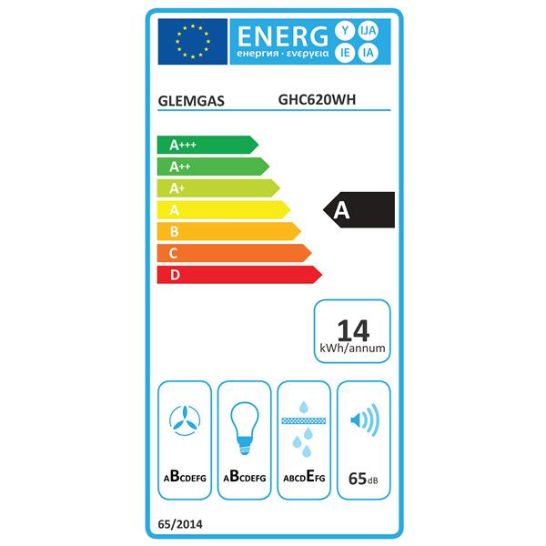 Hotte casquette Glemgas GHC620WH blanche - Cette hotte compacte de 60 cm s’intègre facilement dans les petites cuisines tout en assurant une aspiration efficace - Dotée de 3 vitesses réglables via des boutons poussoirs, elle s’adapte aux besoins de cuisson et reste silencieuse grâce à son moteur DC innovant - Son installation est possible en évacuation ou en recyclage, avec clapet anti-retour fourni - Elle est équipée de deux filtres à graisse métalliques lavables au lave-vaisselle et livrée avec deux filtres à charbon actif CR890 pour une utilisation immédiate - Son éclairage LED double ampoule offre un confort optimal et une luminosité homogène sur le plan de travail - Son conduit d’évacuation est prévu pour un diamètre de 120 mm.