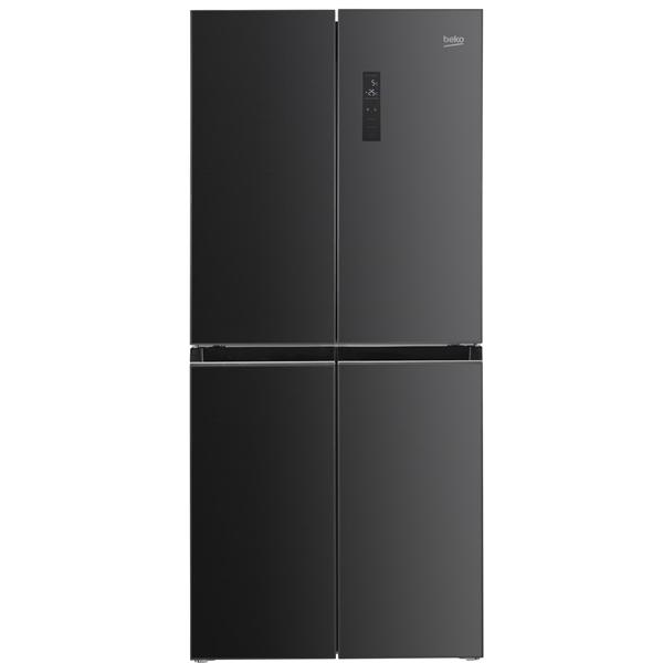Réfrigérateur 4 portes Beko GNO4031GS glass dark grey - D’une capacité totale de 421 l, il répartit 271 l pour la réfrigération et 150 l pour la congélation, un volume confortable pour les foyers recherchant une organisation claire et un accès direct aux aliments - Le froid ventilé total NeoFrost à 3 zones gère indépendamment la température du réfrigérateur, du compartiment fraîcheur et du congélateur afin de maintenir une hygrométrie adaptée et d’éviter toute formation de givre - Le compartiment fraîcheur 0–3 °C permet de conserver viandes, poissons et charcuterie jusqu’à trois fois plus longtemps, la congélation rapide sécurise les apports importants, le mode Eco optimise la consommation, le mode vacances limite le fonctionnement en cas d’absence et l’alarme sonore se déclenche en cas de porte ouverte - L’équipement intérieur comprend un éclairage par colonne de LED pour une visibilité homogène, trois clayettes en verre, deux bacs à légumes, six balconnets de porte répartis en larges et demi-balconnets, une boîte à œufs, ainsi que quatre tiroirs de congélation et un bac à glaçons pour une organisation efficace - La commande électronique avec écran LCD tactile en façade permet un réglage précis et intuitif des températures et des fonctions - Ce modèle est proposé avec une façade en verre dark grey et des côtés silver, offrant une finition contemporaine adaptée aux cuisines modernes.