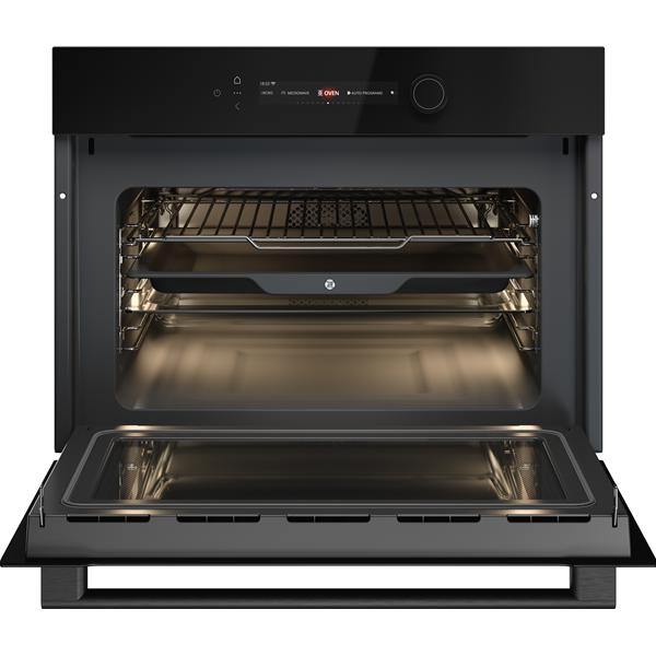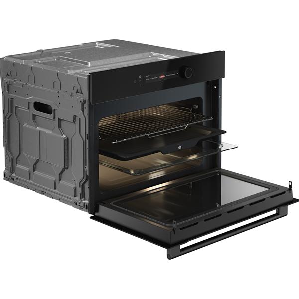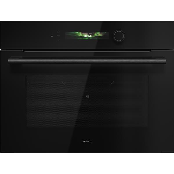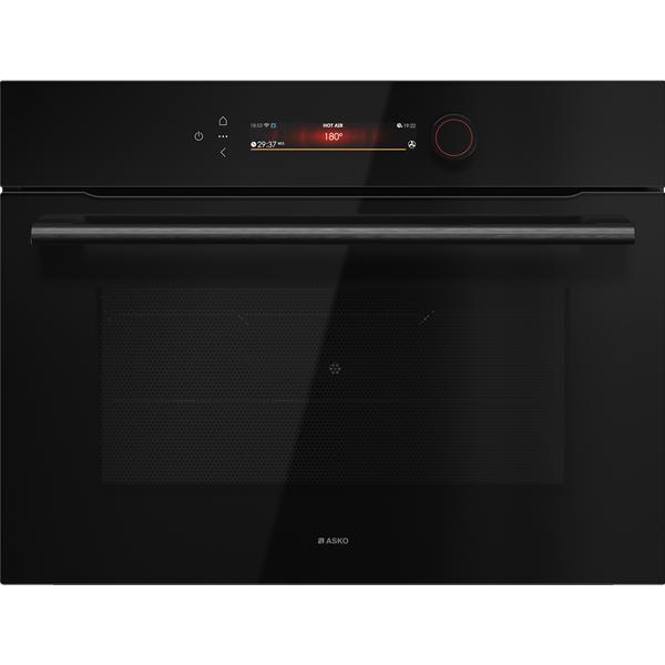 Four combiné à micro-ondes ASKO OCM54BGH série 5 Craft Glass finition verre noir pour niche H 45 cm - Les commandes associent un écran tactile couleur TFT 6 pouces et une molette multifonction pour naviguer avec précision dans les menus et ajuster facilement température ou puissance - Ce modèle propose 24 fonctions de cuisson pour alterner chaleur tournante, chaleur traditionnelle, gril, Air Fry et micro-ondes selon les recettes - La connectivité ConnectLife permet de surveiller et contrôler le four à distance pour plus de flexibilité au quotidien - Les modes combinés chaleur tournante + micro-ondes ou gril + micro-ondes réduisent le temps de préparation tout en assurant une surface dorée, utile pour les gratins, rôtis et plats complets - Les 112 programmes automatiques simplifient la cuisson en adaptant les paramètres au plat sélectionné - La sonde de cuisson mesure la température à cœur des aliments et permet d’atteindre précisément le niveau souhaité pour des viandes ou poissons maîtrisés - La fonction de calibration garantit que la température réelle dans la cavité correspond au réglage avec un écart maximal de ±1 °C pour une cuisson régulière - Le flux d’air à 360° assure une répartition homogène de la chaleur sur plusieurs niveaux, pratique pour cuire plusieurs préparations simultanément - Le préchauffage rapide limite le temps d’attente lors des préparations quotidiennes - Le système micro-ondes Inverter délivre une puissance stable de 90 à 1000 W pour chauffer, décongeler ou cuire avec précision et homogénéité - L’équipement comprend un éclairage latéral à différentes hauteurs, 4 niveaux de cuisson, une grille, une lèchefrite et un plat en verre, un kit rails télescopiques sur un niveau et une porte tempérée avec refroidissement actif des vitres - Panier AirFry fourni en option (référence 907744).
