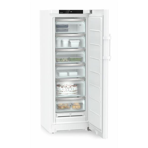 Congélateur armoire Liebherr FNe 5016 coloris blanc - Capacité totale de 238 litres offrant un espace de stockage confortable pour organiser facilement les surgelés du quotidien et limiter les contraintes de place - Froid NoFrost empêchant la formation de givre pour éviter toute opération de dégivrage et maintenir une performance stable dans le temps - Technologie NoFrost associée à une puissance de congélation de 17 kg en 24 heures permettant de congeler rapidement les aliments et de préserver leur qualité, avec poignée-barre intégrant un mécanisme d’ouverture facilitant l’accès même en usage répété et améliorant le confort au quotidien - Compatibilité SmartDeviceBox en option pour anticiper les usages connectés et piloter l’appareil à distance si nécessaire - Équipement intérieur composé de 6 tiroirs avec VarioSpace offrant une grande modularité de rangement, dont un tiroir supérieur inclinable pour un accès facilité et une SpaceBox permettant d’accueillir des pièces volumineuses, idéal pour optimiser l’organisation et gagner du temps - Commande électronique avec écran tactile digital permettant un réglage précis et intuitif de la température et des fonctions - Coloris blanc sobre et intemporel facile à intégrer dans tous les styles de cuisine.