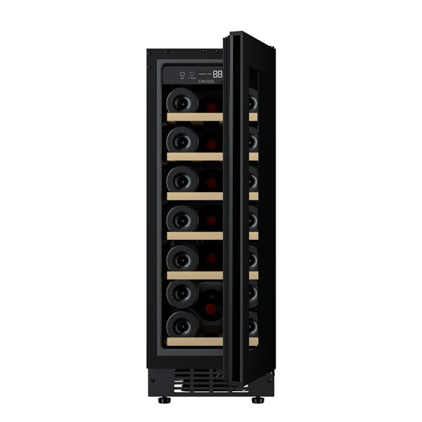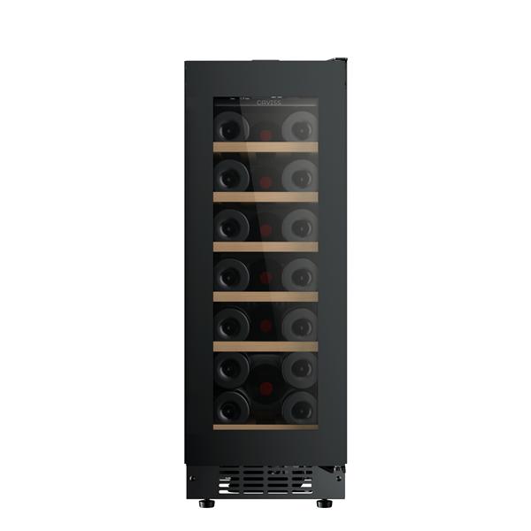 Cave à vin encastrable sous plan Caviss CT1SP20H82N30 - D’une capacité de 58 L permettant de stocker jusqu’à 20 bouteilles Bordeaux, elle convient parfaitement pour conserver et servir vos vins dans un espace optimisé - Le fonctionnement repose sur une cave de service à une zone avec une plage de température réglable de +5°C à +22°C, idéale pour adapter précisément la conservation selon les types de vins - Le système anti-vibration limite les perturbations pour préserver les qualités du vin dans le temps, le fonctionnement silencieux assure un confort d’usage au quotidien et permet une intégration discrète dans une cuisine ou un espace de vie, et la porte réversible facilite l’installation selon la configuration - L’équipement comprend six clayettes en bois qui réduisent les vibrations tout en apportant robustesse et esthétique, un éclairage LED blanc pour une visibilité optimale sans altérer les bouteilles et une porte vitrée avec cadre noir pour une mise en valeur élégante de la cave - La régulation permet un réglage précis de la température pour adapter la conservation selon les besoins.