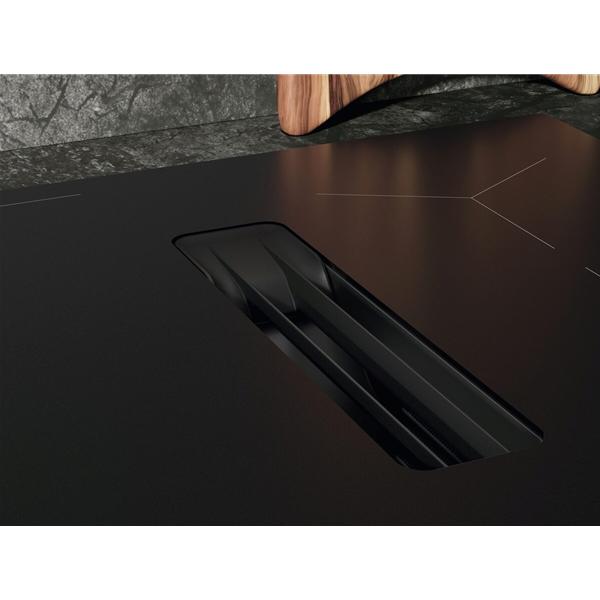 Plaque induction aspirante AEG NCT64B00CT série SaphirMatt®SE 60 cm - Elle dispose de 4 foyers induction dont 2 combinables grâce à la fonction Bridge pour accueillir de grands récipients ou une plancha avec une répartition homogène de la chaleur - Elle propose 9 niveaux de puissance précis avec réglage par demi-incréments pour ajuster finement chaque préparation et éviter les débordements ou surcuissons - La technologie Hob²Hood pilote automatiquement la hotte intégrée pour maintenir un air sain sans intervention manuelle et améliorer le confort en cuisine - Les boosters et minuteries indépendantes facilitent la gestion simultanée de plusieurs cuissons pour gagner en efficacité et mieux organiser les préparations - L’aspiration intégrée offre un débit allant jusqu’à 630 m³/h en mode intensif pour capter efficacement fumées et odeurs même lors de cuissons soutenues et maintenir un environnement agréable - Le kit de recyclage inclus permet une installation simplifiée sans évacuation extérieure tout en assurant un traitement efficace des odeurs dès la mise en service - Le moteur Inverter optimise la performance tout en limitant le bruit avec un niveau sonore maîtrisé jusqu’à 69 dB pour un meilleur confort d’utilisation - L’absence de hotte murale libère l’aménagement et permet une implantation plus flexible de la zone de cuisson - Les commandes Direct Touch offrent un accès rapide et intuitif à chaque niveau de puissance pour un pilotage précis et immédiat - La sécurité est assurée par un verrouillage enfant et un arrêt automatique pour une utilisation sereine au quotidien - Sa surface en verre noir mat SaphirMatt® SE apporte une résistance aux rayures jusqu’à 3 fois supérieure à une plaque standard pour conserver un aspect neuf plus longtemps tout en facilitant l’entretien au quotidien