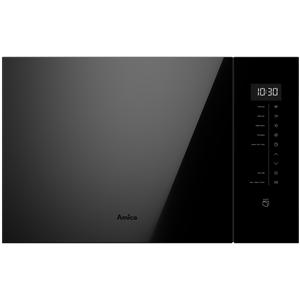 Micro-ondes gril intégrable Amica AMB2025BS ligne Black Line, niche H 38 cm, niche L 56 cm, coloris noir - 5 niveaux de puissance pour ajuster précisément le réchauffage selon les aliments - Commandes sensitives avec programmateur LED électronique, pour un pilotage clair et rapide au quotidien - 8 programmes de cuisson et fonction Quick Start pour lancer instantanément un cycle sans réglage complexe - Technologie Combigrill combinant micro-ondes et grill, idéale pour obtenir des plats chauds à cœur et dorés en surface, sans multiplier les étapes - Porte froide tempérée 4 verres pour limiter la chaleur en façade et sécuriser l’usage au quotidien - Cavité XXL de 25 L, pratique pour réchauffer des assiettes larges ou préparer un plat familial en une fois - Cavité inox en acier inoxydable, reconnue pour sa résistance et sa facilité d’entretien après les projections - Plateau en verre de 31,5 cm pour accueillir des contenants généreux et assurer une rotation homogène - Ouverture automatique de la porte pour un accès fluide, sans effort, et un vrai confort quand on a les mains prises - Éclairage intérieur pour garder un œil sur la cuisson à tout moment - Minuterie jusqu’à 95 min pour gérer les plats plus longs ou les enchaînements de préparation
