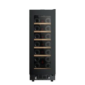 Cave à vin - Offrez à vos vins une conservation optimale avec cette cave à vin encastrable sous plan, conçue pour accueillir jusqu’à 45 bouteilles - Grâce à ses 2 zones de température indépendantes (de +5°C à +20°C), elle permet de stocker et de mettre en température différents types de vins - La zone supérieure peut contenir 15 bouteilles tandis que la zone inférieure en accueille 30 - Équipée d’une porte vitrée noire réversible avec triple vitrage anti-UV, elle protège vos vins des rayons nuisibles - Le système Push-open sans poignée et les charnières pantographe assurent une intégration moderne et discrète dans votre cuisine - À l’intérieur, 4 clayettes bois avec fronton inox et un éclairage LED réglable (bleu, blanc ou orange) garantissent une présentation élégante - Silencieuse avec un niveau sonore de 35 dB, elle fonctionne grâce à un froid ventilé pour une température homogène - Avec une consommation énergétique de 100 kWh/an (classe F) et un volume utile de 115 L, elle allie performance et élégance.