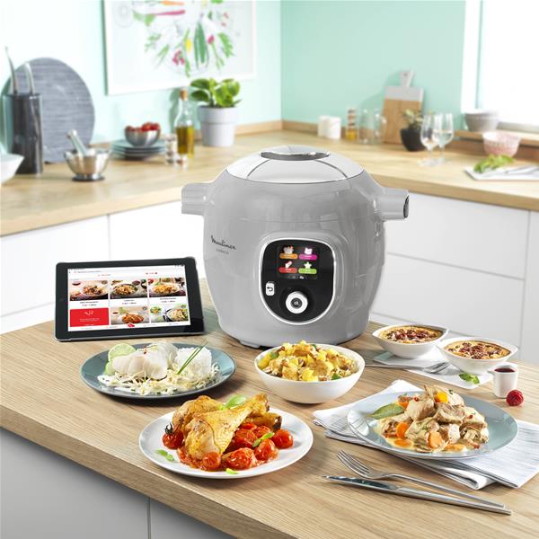 Multicuiseur intelligent haute pression - Cookéo : 80 recettes préprogrammées pour une recette rapides et faciles - Découvrez le multicuiseur intelligent haute pression de Moulinex, pour cuisiner vite et bien vos plats au quotidien en vous laissant guider - Grâce à son écran LCD intuitif et intelligent et à son guide culinaire interactif, Cookéo réfléchit pour vous, adapte les recettes et vous guide pas à pas pour vous simplifier la cuisine au maximum - Plus de surveillance, ni de questionnement - Une utilisation intuitive grâce aux 4 menus : cuisson automatique en sélectionnant l'Ingrédient (viandes, poissons, légumes, fruits..), guide pas à pas de 80 Recettes pré-programmées (sucrée ou salée), Manuel (dorer, rissoler, cuisson rapide, cuisson vapeur et en sauce + temps de cuisson) et Favoris - 6 modes de cuisson : Cuisson sous pression, Cuisson vapeur, Rissoler, Mijoter, Réchauffer et Maintenir au chaud - Départ différé : choisissez exactement quand vous voulez manger - Maintien au chaud automatique - Cuve amovible avec revêtement céramique antiadhésif - Capacité familiale de 6 L idéale jusqu'à 6 personnes - Dispositif de sécurité en cas de surpression - Verrouillage et manipulation facile du couvercle - Panier vapeur - Arrêt automatique - Nettoyage facile : cuve et accessoires compatibles lave-vaisselle - Cordon amovible - Application gratuite pour plus de recettes - Coloris Gris - Puissance 1600 W - Garantie 2 ans.