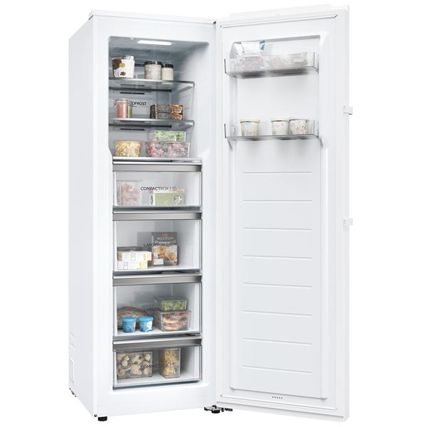 Congélateur armoire Haier H4F272WEH1 blanc, conçu pour offrir une capacité nette de 276 litres adaptée aux besoins de stockage importants du quotidien - Son froid No Frost évite la formation de givre, libère l’utilisateur de la corvée de dégivrage et aide à conserver un volume utile pleinement disponible - La fonction Instaswitch permet de basculer l’appareil en mode réfrigérateur en un clic, un vrai avantage pour s’adapter à un besoin ponctuel de fraîcheur ou à une variation de stock - La connectivité permet de contrôler le produit à distance, de créer un inventaire et de profiter de conseils de conservation, ce qui facilite l’organisation au quotidien - Le fonctionnement jusqu’à -15 °C dans une pièce non chauffée apporte une vraie souplesse d’installation, tandis que la super congélation et l’alarme de température renforcent la sécurité de conservation - L’équipement comprend un éclairage LED, 4 tiroirs transparents et 2 balconnets contre-porte pour ranger plus clairement et retrouver plus vite les aliments - La régulation électronique simplifie les réglages et le coloris blanc s’intègre facilement dans de nombreux environnements.