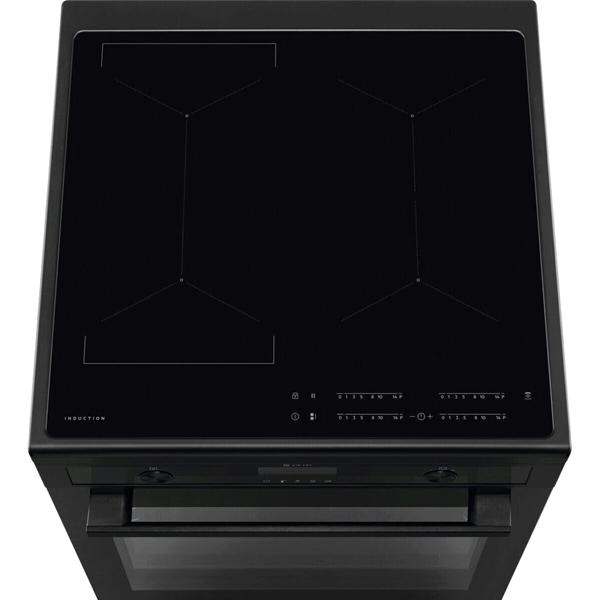 Cuisinière AEG CIB6499APB - Cette cuisinière induction 60 x 60 mise sur la flexibilité MaxiSense, avec une surface de cuisson qui détecte la taille des récipients pour chauffer vite et juste où il faut - Les 4 foyers de 21 cm (2300 W avec booster 3200 W) offrent une belle réactivité pour saisir, mijoter ou lancer plusieurs cuissons en même temps - Les commandes sensitives individuelles type slider (niveaux 1 à 14) donnent un réglage rapide et précis, avec fonctions Stop and Go et indicateur de temps écoulé pour garder la main sur le rythme - Le four SurroundCook à chaleur tournante pulsée s’appuie sur une résistance annulaire pour une cuisson homogène sur plusieurs niveaux - Le nettoyage pyrolyse simplifie l’entretien en réduisant les résidus en cendres - Rails télescopiques sur 2 niveaux, porte froide 4 verres démontable et fermeture douce assistée ajoutent du confort au quotidien - Coloris noir mat.