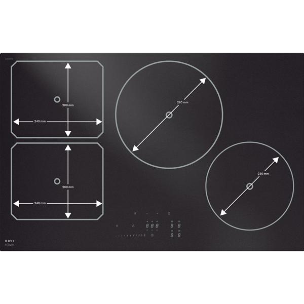 Table induction Novy 1726G1 série Induction Power avec finition Matte Line verre noir mat - Largeur 80 cm - 4 zones de cuisson - Commande touch slider centralisée avec affichage rouge - Fonction InTouch pour interaction avec une hotte compatible, zone flexible automatique permettant l’utilisation de grands récipients, fonction Stop&Go pour une mise en pause instantanée de la cuisson, auto-détection des casseroles pour un usage intuitif, fonction maintien au chaud 70 °C idéale pour le service, minuterie indépendante par zone avec cuisson automatique et count-up timer pour un suivi précis, verrouillage du bandeau de commande pour plus de sécurité, indication de chaleur résiduelle pour un usage maîtrisé, fonction nettoyage facilitant l’entretien en cours d’utilisation - Puissance maximale 7 400 W offrant des montées en température rapides et une gestion efficace des cuissons du quotidien - Zones avant gauche et arrière gauche 2 100 W avec booster 3 000 W sur surface flexible, zones droites 2 300 W avec booster 3 000 W adaptées aux ustensiles de différents diamètres - Table conçue pour une pose standard ou affleurante afin de s’intégrer harmonieusement dans le plan de travail - Produit réservé aux points de vente agréés Novy Premium Innovation Products. Dans le cadre des efforts de développement pensé pour une meilleure longévité de Novy, Novy opte pour une consommation et une production responsables en minimisant l'utilisation de papier. A cet effet, Novy remplace les versions papier des notices d’installation et modes d’emploi par des QR codes donnant accès aux dernières informations spécifiques des produits.
