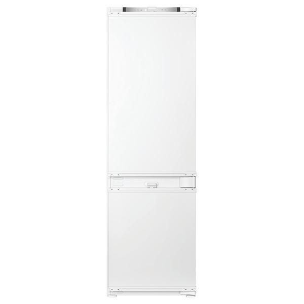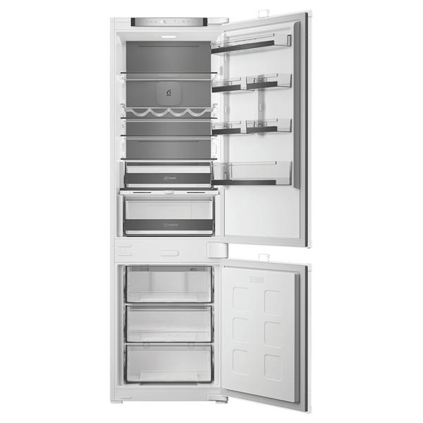 Réfrigérateur combiné encastrable Whirlpool WHK25293B5E1 offrant une capacité totale de 270 litres répartie entre 194 litres pour la partie réfrigération et 106 litres pour le congélateur - Il intègre un froid Dual No Frost avec dégivrage automatique sur les deux compartiments pour éviter la formation de givre et simplifier l’entretien au quotidien - La technologie 6ème Sens ajuste automatiquement les paramètres pour mieux préserver les aliments tandis que le bac Fresh 0-3°C protège les produits sensibles et que le tiroir ProFresh optimise l’humidité pour conserver fruits et légumes plus longtemps - Le mode vacances limite la consommation en cas d’absence et l’alarme porte ouverte sécurise l’utilisation - L’aménagement intérieur repose sur un éclairage LED, trois clayettes en verre dont certaines ajustables, un porte-bouteilles et trois tiroirs côté congélateur pour un rangement structuré et accessible - La régulation électronique assure un réglage précis et stable de la température pour une meilleure conservation des aliments - Hauteur de niche 177,5 cm avec système de fixation par glissières - Cet appareil est intégrable. Il est livré sans habillage ni porte décorative, afin de vous permettre de l’assortir au mobilier et à la couleur de votre cuisine.