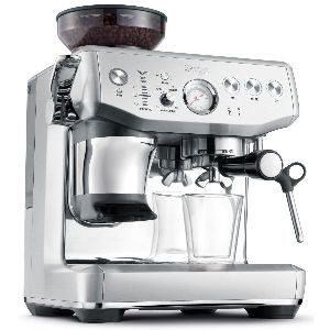 Expresso avec broyeur - The Barista Express Inox - Créez de savoureux expressos de qualité professionnelle ! - Broyeur conique intégré (250 g) avec support de mouture main-libres- Contrôle de la mouture et du dosage réglables (18 réglages) - Dameur magnétique intégré - Fonction de pré-infusion à basse pression pour une crème plus riche - Jauge de pression pour une extraction de café optimale : Le contrôle de la température PID maintient la stabilité de la température tout au long de l'extraction - Pompe de fabrication Italienne 15 bars - Buse vapeur performante pour eau chaude et mousse de lait avec fonction pivotante 360° pour un positionnement parfait : temps de chauffe rapide et vapeur haute pression pour obtenir un lait à la texture micro-mousse soyeuse, essentielle dans l'art du latte - Sortie d'eau chaude dédiée - Réservoir d'eau 2 L - Livré avec un porte filtre 54 mm avec filtres 1 et 2 tasses, un pichet à lait de 470 ml en inox, un disque et des tablettes de nettoyage, support de filtre et filtre à eau, clé allen et brosse de nettoyage - Coloris Inox Brossé - Puissance 1850 W - Garantie 2 ans.