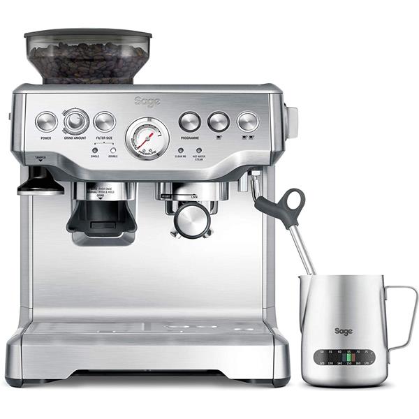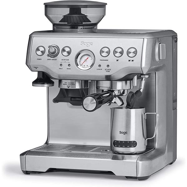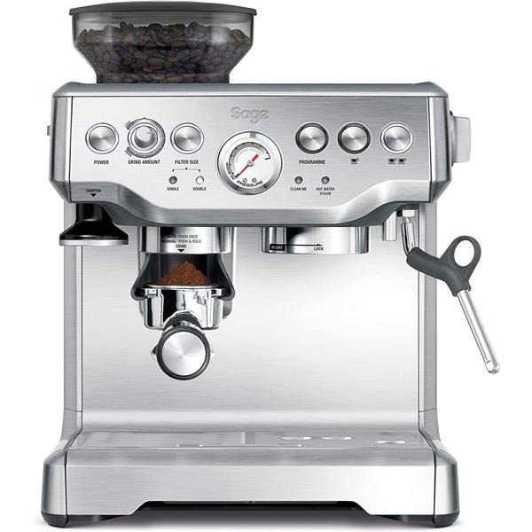 Expresso avec broyeur - The Barista Express Inox - Créez de savoureux expressos de qualité professionnelle ! - Broyeur conique intégré (250 g) avec support de mouture main-libres- Contrôle de la mouture et du dosage réglables (18 réglages) - Dameur magnétique intégré - Fonction de pré-infusion à basse pression pour une crème plus riche - Jauge de pression pour une extraction de café optimale : Le contrôle de la température PID maintient la stabilité de la température tout au long de l'extraction - Pompe de fabrication Italienne 15 bars - Buse vapeur performante pour eau chaude et mousse de lait avec fonction pivotante 360° pour un positionnement parfait : temps de chauffe rapide et vapeur haute pression pour obtenir un lait à la texture micro-mousse soyeuse, essentielle dans l'art du latte - Sortie d'eau chaude dédiée - Réservoir d'eau 2 L - Livré avec un porte filtre 54 mm avec filtres 1 et 2 tasses, un pichet à lait de 470 ml en inox, un disque et des tablettes de nettoyage, support de filtre et filtre à eau, clé allen et brosse de nettoyage - Coloris Inox Brossé - Puissance 1850 W - Garantie 2 ans.