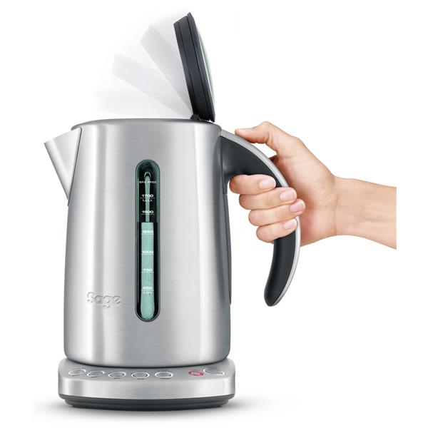 Bouilloire 1.7 L à température variable - The Smart Kettle - Adaptez la température de l'eau selon vos besoins ! - 5 sélections possibles de température (80, 85, 90, 95 et 100°C) pour s'adapter à tous les thés, cafés ou préparations diverses - Fonction Maintien au Chaud pendant 20 minutes - Filtre anti-dépôt amovible et lavable pour garantir une eau sans résidus - Double indicateur de niveau d'eau - Arrêt automatique avec signal sonore et protection en cas de manque d'eau - Poignée ergonomique antidérapante avec couvercle à ouverture contrôlée en acier inoxydable - Coloris Inox Brossé - Puissance 3000 W - Garantie 2 ans.