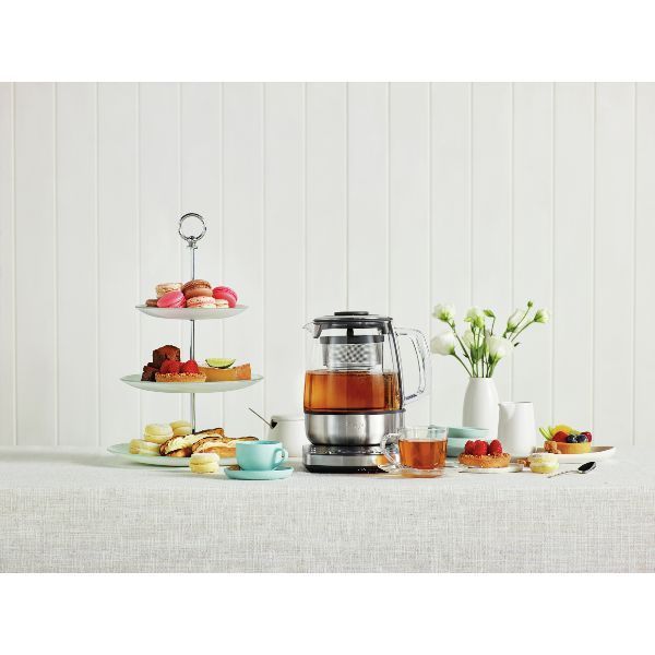 Théière 1.5 L - Tea Maker - La théière des amateurs de thé qui connaît la température et le temps d'infusion parfaits pour votre thé préféré et qui le prépare pour vous ! - Le thé parfait en un tour de main ! - Sans fil avec base pivotante 360 ° - Une préparation automatique qui fait la différence - 5 réglages pré-programmés et personnalisables - Sélectionnez votre thé : Vert, Blanc, Noir, infusion ou Oolong (80° à 100°) - Une fois l'eau à bonne température, appuyer sur le bouton et le filtre à thé entièrement automatisé descend et remonte pour extraire le meilleur de votre thé - Le filtre à thé agite doucement les feuilles et infuse avec précision votre thé pour bénéficier de tous ses arômes - 3 intensités disponibles pour s'adapter à votre goût : Léger / Moyen / Fort - Démarrage automatique en fonction de la programmation de la boisson : réveillez-vous avec votre boisson préférée déjà infusée ! - Maintien au chaud automatique de 60 minutes - Touche spéciale fonction bouilloire 100 °C - Écran LCD - Capteur de température précis avec affichage en temps réel pour suivre la progression - Verseuse en verre trempé résistant aux chocs thermiques - Résistance protégée du contact de l'eau - Touches sensitives rétro-éclairées - Enrouleur de cordon - Livrée avec une cuillère à thé - Coloris Inox Brossé - Puissance 2000 W - Garantie 2 ans.