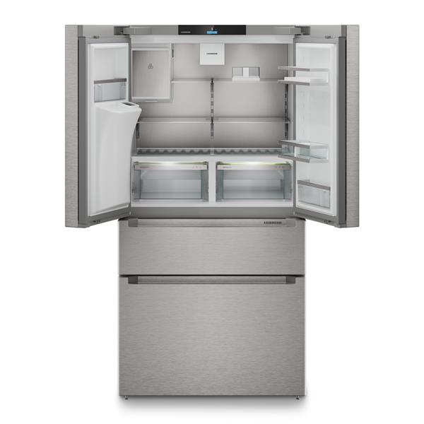 "Réfrigérateur 2 portes + 2 tiroirs Liebherr MBsddi 9528 - Ce combiné à portes françaises conjugue élégance, performance et confort d’utilisation au quotidien - Avec un volume total de 538 L, il offre un espace généreux réparti entre un réfrigérateur de 214,1 L, une zone BioFresh de 93,9 L et un congélateur de 230 L doté de deux tiroirs - Le froid brassé PowerCooling FreshAir, associé à un filtre à charbon actif, assure une température homogène et une hygiène optimale - Les deux tiroirs BioFresh montés sur rails SoftTelescopic conservent fruits, légumes, viandes et poissons à une température juste au-dessus de 0 °C - Grâce à la technologie VarioTemp, le troir supérieur peut être réglé entre -18 °C et +5 °C pour offrir une flexibilité maximale - Le distributeur Water & Ice délivre eau fraîche, glace pilée et glaçons limpides à la demande - L’éclairage LED plafonnier et BioFresh assure une visibilité parfaite à tous les niveaux - La régulation électronique s’effectue via un écran TFT tactile couleur 2,4"" simple et intuitif - Compatible Smart Home, ce réfrigérateur connecté peut être piloté via la SmartDeviceBox incluse - Son design inox anti-traces et son niveau sonore de seulement 39 dB en font un appareil haut de gamme aussi discret qu’efficace."