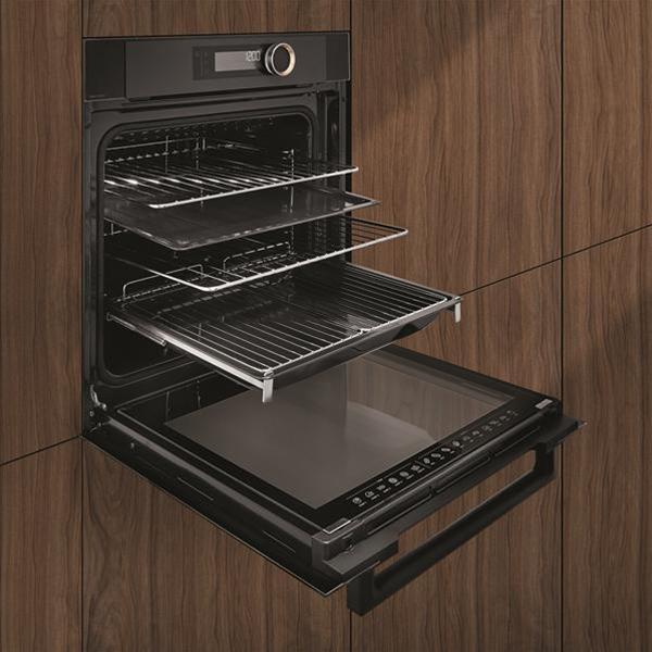Four pyrolyse - 12 modes de cuisson dont Chaleur Tournante, Chaleur Combinée, Maintien au chaud et Pain - Afficheur Gourmet LCD blanc - Manette sertie d’inox gravé avec un anneau intérieur cuivré - Préconisation de température - Technologie Perfect Sensor : cuisson 100% automatique - Mode Chef 6 plats (100% automatique) - Basse Température sur 10 plats - Guide culinaire pour 35 recettes - Fonction Séchage : ce procédé de déshydratation permet de sécher à une température, entre 60 et 80°C, nombre d'aliments différents comme les herbes aromatiques, fruits ou légumes. En empêchant la prolifération des bactéries, il permet ainsi de les conserver plusieurs mois - Gril variable 4 puissances - 3 niveaux de pyrolyse dont Pyro Express 59 min - Eclairage Halogène - Rail télescopique 60% - Cavité Enamélite - Porte froide - Contre-porte plein verre démontable - Fermeture douce de la porte SoftClose - Sécurité enfants - Finition Noir Absolu.