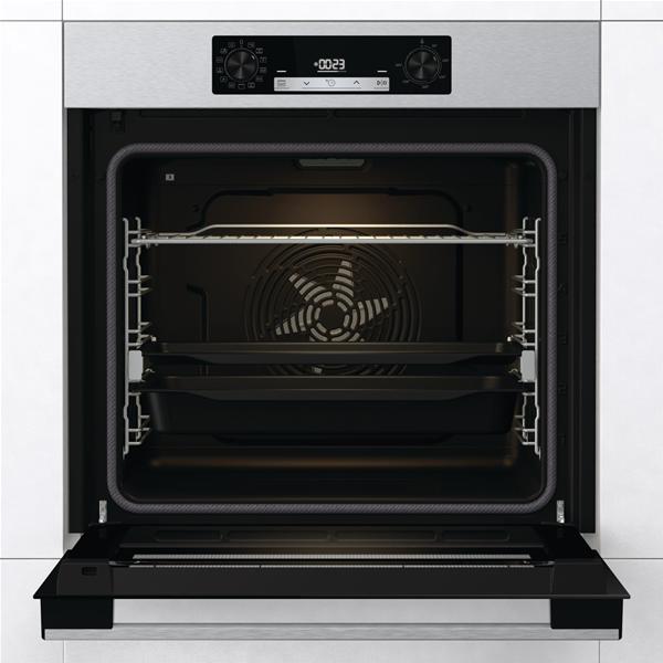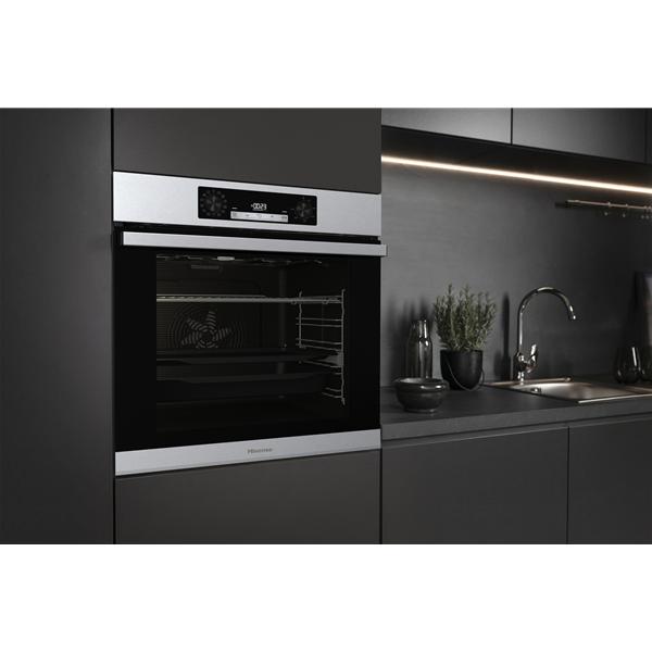 Four pyrolyse Hisense BSA65226PX coloris inox - Les commandes par boutons PushPull avec programmateur électronique IconLed offrent un pilotage simple et précis au quotidien - Ses 12 modes de cuisson permettent de varier facilement les recettes, du repas familial aux préparations plus techniques - La cuisson vapeur simple apporte des plats plus moelleux à l’intérieur et croustillants à l’extérieur, idéale pour le pain, le poisson ou les légumes - Le mode Pizza à 300 °C assure une cuisson très rapide pour une pâte bien dorée en quelques minutes - La fonction AirFry permet de retrouver des fritures plus légères avec peu ou pas d’huile (panier AirFry non fourni) - Le mode Surgelés et le préchauffage rapide facilitent les repas improvisés en gagnant du temps - La cuisson lente et la cuisson par étapes améliorent la maîtrise des cuissons délicates pour des résultats réguliers - La cavité extra-large 77 L et la forme arrondie Even Bake autorisent plusieurs niveaux de cuisson simultanée pour optimiser chaque fournée - Le nettoyage pyrolyse à 3 niveaux complète AquaClean pour un entretien plus pratique après usage - L’équipement comprend un éclairage intérieur supérieur, une porte froide à 4 vitres, une ouverture douce avec fermeture amortie et des glissières télescopiques extractibles aux ¾ sur un niveau - Les accessoires fournis incluent une grille, une plaque à pâtisserie émaillée et une lèchefrite profonde émaillée pour s’adapter aux principales préparations.