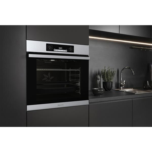 Four émail Hisense BI62216AX coloris inox - Les commandes par boutons ergonomiques avec programmateur électronique IconLed permettent un réglage simple et lisible au quotidien - Ses 10 modes de cuisson offrent une vraie polyvalence pour cuire, gratiner ou rôtir selon les envies - Le mode Pizza à 300 °C assure une cuisson très rapide en environ 6 minutes pour une pâte moelleuse et croustillante - Le mode Surgelés facilite la préparation des plats du quotidien sans décongélation préalable - La cuisson lente apporte plus de maîtrise pour des viandes tendres ou des plats mijotés au four - Le mode Gratin permet d’obtenir une finition dorée et appétissante sur les gratins et plats généreux - Le préchauffage rapide réduit le temps d’attente pour lancer une cuisson plus vite - La cuisson par étapes améliore la précision en enchaînant plusieurs phases automatiquement - La grande cavité extra-large 77 L avec voûte arrondie favorise une cuisson homogène sur plusieurs niveaux pour optimiser chaque fournée - Le nettoyage par hydrolyse AquaClean simplifie l’entretien après cuisson - L’équipement comprend un éclairage intérieur supérieur, une porte tempérée, un ventilateur de refroidissement dynamique DC+ et des glissières télescopiques extractibles aux ¾ sur un niveau pour manipuler les plats plus sereinement - Les accessoires fournis incluent une grille et une lèchefrite profonde émaillée pour couvrir les usages essentiels.