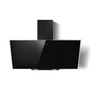 Hotte décorative STRIPE LUX BL/A/90 - Largeur 90 cm - 3 vitesses + 1 Booster - Commandes électroniques - Connectée WiFi : Commande à distance via assistant vocal ou smartphone - Double zone d'aspiration - Filtres à graisse en aluminium - Filtre à charbon en option (référence CFC0140343) - Eclairage LED - Sortie Ø 150 mm - Livrée avec cheminée - Finition verre noir avec bandeau inox.
