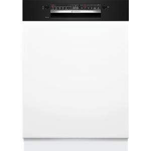 Lave-vaisselle encastrable Bosch SMI4HCB07E Série 4 60 cm avec bandeau noir - Ce modèle accueille jusqu’à 14 couverts et propose 6 programmes adaptés à chaque besoin dont Eco 50 °C pour un lavage économe et Auto 45-65 °C qui ajuste automatiquement les paramètres - Le programme Intensif 70 °C garantit une propreté parfaite tandis que Silence 50 °C permet un fonctionnement encore plus discret à seulement 41 dB - Les options incluent Séchage Extra pour un résultat optimal, SpeedPerfect+ pour réduire la durée des cycles, la demi-charge pour plus de flexibilité ainsi que Home Connect pour piloter et diagnostiquer l’appareil à distance - Le départ différé de 1 à 24 h et l’affichage du temps restant renforcent le confort d’utilisation - Les paniers Flex sont modulables avec un panier supérieur réglable en hauteur grâce au système RackMatic, des supports à tasses et des picots rabattables - Un tiroir à couverts dédié libère de l’espace dans le panier inférieur et simplifie le rangement des ustensiles - La cuve inox assure robustesse et durabilité - Le moteur EcoSilence Drive offre efficacité et silence de fonctionnement - Côté sécurité, l’appareil est équipé du système AquaStop et d’une sécurité enfants - Le triple filtre autonettoyant contribue quant à lui à un entretien facilité - Cet appareil est intégrable : Il est livré sans habillage ni porte décorative, afin de vous permettre de l’assortir au mobilier et à la couleur de votre cuisine.