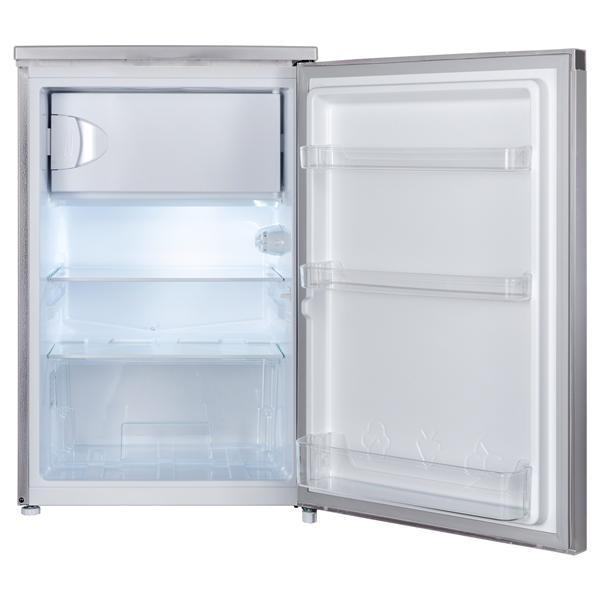 Réfrigérateur table top Fagor FTT107DS silver - Avec un volume utile total de 107 litres réparti entre 94 litres pour la partie réfrigérateur et 13 litres pour le compartiment congélateur 4 étoiles, il permet de stocker les produits essentiels du quotidien tout en conservant une place dédiée aux surgelés - Le système de froid statique dans le réfrigérateur et dans le compartiment congélateur assure une conservation simple et efficace des aliments - Le dégivrage automatique du réfrigérateur évite les opérations d’entretien régulières et permet de gagner du temps au quotidien tout en maintenant de bonnes conditions de conservation des aliments - Le compartiment congélateur 4 étoiles avec dégivrage manuel permet de conserver des produits surgelés et de congeler jusqu’à 2 kg d’aliments en 24 h pour répondre aux besoins occasionnels de congélation - L’éclairage LED intérieur améliore la visibilité dans la cavité et permet de repérer rapidement les aliments, même lorsque le réfrigérateur est bien rempli - L’aménagement intérieur comprend une clayette en verre, trois balconnets de porte, un bac à légumes et un dessus de bac pour organiser facilement les produits frais et optimiser l’espace disponible - La contre-porte non modulable offre un rangement simple pour les bouteilles, condiments et produits du quotidien - La régulation par thermostat mécanique permet un réglage simple et fiable de la température.