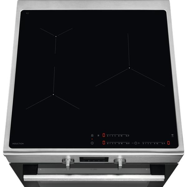 Cuisinière induction Electrolux LKI64890CX inox - Ce modèle 60 x 60 cm associe une table induction performante et un four multifonction SurroundCook® pour cuisiner avec précision au quotidien - La technologie induction chauffe directement le fond des récipients et permet d’obtenir une montée en température rapide ainsi qu’un contrôle immédiat de la puissance pour adapter facilement chaque cuisson - Les commandes sensitives coulissantes offrent un réglage précis et intuitif de la puissance afin d’ajuster la température d’un simple geste pendant la préparation des plats - Les trois zones induction délivrent une puissance élevée pour saisir rapidement les aliments, maintenir une cuisson douce ou préparer plusieurs recettes simultanément - La fonction Stop & Go permet de mettre toutes les zones en maintien au chaud en un instant afin de gérer facilement une interruption pendant la cuisson - Le four multifonction SurroundCook® avec chaleur tournante pulsée assure une diffusion homogène de l’air chaud dans toute la cavité pour cuire uniformément sur plusieurs niveaux - Son grand four XXL de 73 litres offre un espace confortable pour préparer des plats familiaux ou cuire plusieurs préparations en même temps - Les 45 recettes pré-programmées facilitent la réalisation de nombreuses préparations en proposant des réglages adaptés pour gagner du temps en cuisine - L’écran LED tactile permet de contrôler facilement la température, le temps de cuisson et les différents modes du four - Le nettoyage pyrolyse transforme les résidus de cuisson en cendres faciles à essuyer afin de simplifier l’entretien de la cavité - La porte froide et la fermeture douce apportent un confort d’utilisation appréciable au quotidien.