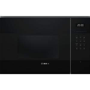 Micro-ondes gril intégrable Bosch BEL554MB2 Série 6 pour niche hauteur 380 à 382 mm largeur 560 à 568 mm coloris noir - Il propose 5 niveaux de puissance micro-ondes de 90 W à 900 W permettant d’adapter précisément l’intensité selon qu’il s’agisse de décongeler, réchauffer ou cuire rapidement - Les commandes électroniques par touchControl avec slider et affichage LED assurent un réglage simple et précis au quotidien - Les modes micro-ondes et gril 1,2 kW peuvent être utilisés séparément ou combinés, avec 8 programmes automatiques dont 4 de décongélation, 3 micro-ondes et 1 combiné pour faciliter la préparation des plats courants - La fonction mémoire enregistre un réglage favori pour gagner du temps sur les utilisations répétées - La technologie SpeedChef™ réduit les temps de cuisson pour un usage plus efficace au quotidien - L’assistant nettoyage par hydrolyse limite l’effort d’entretien et simplifie le nettoyage après cuisson - L’éclairage LED offre une bonne visibilité des aliments tout en maîtrisant la consommation d’énergie - Le plateau tournant en verre de 31,5 cm permet d’accueillir des plats de grand diamètre - La cavité intérieure en inox favorise un nettoyage plus rapide et une meilleure résistance dans le temps - L’ouverture latérale avec charnières à gauche assure une intégration fluide en colonne et un accès confortable aux plats.