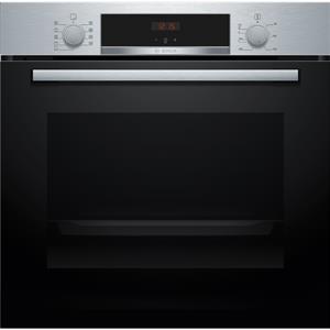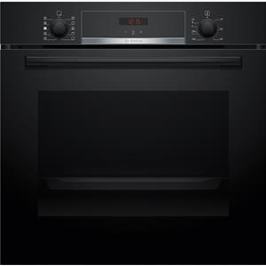 Four EcoClean Bosch HQA534BB3 Série 4 Noir avec fonction vapeur - Ce four encastrable de 71 L combine chaleur tournante et vapeur pour des plats dorés à l’extérieur et moelleux à l’intérieur - Ses commandes par boutons rotatifs escamotables sont simples et pratiques, accompagnées d’un affichage LED rouge lisible - Il propose 8 modes de cuisson dont Hotair 3D, convection naturelle, gril air pulsé, gril grande surface, position pizza, chaleur de sole, air pulsé doux et chaleur tournante avec vapeur pour des résultats savoureux - Côté confort, il est doté d’une horloge électronique, d’un départ automatique, d’un booster de préchauffage, d’un contrôle optique de la montée en température et d’un réservoir d’eau de 250 ml pour la fonction vapeur - Niveau équipement, il dispose d’une cavité émaillée anthracite, d’un éclairage halogène, d’un ventilateur de refroidissement et d’une porte 3 vitres à faible température - Le nettoyage est facilité par EcoClean sur les 4 parois, complété par l’hydrolyse Cleaning Assistance pour les salissures légères - Les accessoires inclus sont une grille et une lèchefrite.