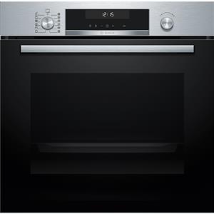 Four pyrolyse Bosch HBG578ES7 Série 6 Inox - Ce four encastrable séduit par son design moderne avec bandeau en inox et afficheur LCD clair - Doté de commandes électroniques par boutons escamotables, il est simple d’utilisation et pratique à nettoyer - Il propose 30 programmes automatiques grâce à AutoPilot ainsi que 9 modes de cuisson dont Hotair 3D, convection naturelle, gril air pulsé, position pizza, cuisson basse température ou encore Air Fry pour des résultats variés et réussis - La connectivité Home Connect permet de piloter et contrôler l’appareil à distance depuis un smartphone ou une tablette - Côté confort, il bénéficie d’une capacité de 71 L, d’une horloge électronique, d’une préconisation de température, d’un départ différé, d’un booster de préchauffage, d’un contrôle optique de la montée en température et même d’une fonction Sabbat - Niveau équipement, on retrouve un éclairage halogène, une porte froide 4 vitres avec fermeture douce SoftMove, un ventilateur de refroidissement ainsi qu’une cavité émaillée anthracite - Les accessoires inclus sont une grille, une lèchefrite pyrolyse et une plaque chauffante Air Fry, avec rails télescopiques sur 1 niveau - La sécurité est assurée par un verrou électronique, un indicateur de chaleur résiduelle, une coupure automatique et une sécurité enfants, même lors des cycles pyrolyse.