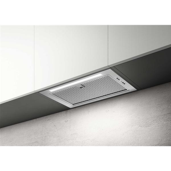 Hotte encastrée Elica FOLD S PRF0181962 acier inox - Avec sa largeur de 52 cm, ce modèle compact s’intègre facilement dans un meuble haut ou un élément de cuisine tout en assurant une captation efficace des fumées et odeurs de cuisson - Elle propose 3 vitesses complétées par une fonction Booster qui permet d’augmenter temporairement la puissance d’aspiration afin d’évacuer rapidement les vapeurs lors des cuissons intensives - Les commandes électroniques offrent un réglage simple et précis des vitesses et facilitent l’adaptation de la puissance d’aspiration selon les besoins du moment - Un indicateur de saturation des filtres informe l’utilisateur lorsque l’entretien devient nécessaire, ce qui aide à maintenir une efficacité d’aspiration optimale dans le temps - Les filtres à graisse sont en acier inoxydable, une solution robuste et durable qui facilite le nettoyage et contribue à conserver de bonnes performances d’aspiration au quotidien - Les filtres à charbon sont proposés en option pour une installation en mode recyclage (référence CFC0140343) et une version longue durée est également disponible (référence CFC0162221) - L’éclairage STRIP LED 1 x 7 W délivre une lumière de 3500 K avec une intensité de 477 lux afin d’éclairer efficacement la zone de cuisson et d’améliorer le confort lors de la préparation des repas - La sortie d’air de 150 mm favorise une évacuation performante des fumées en mode extraction - Sa façade en acier inox associée à un corps gris assure une intégration discrète et durable dans la plupart des cuisines modernes.